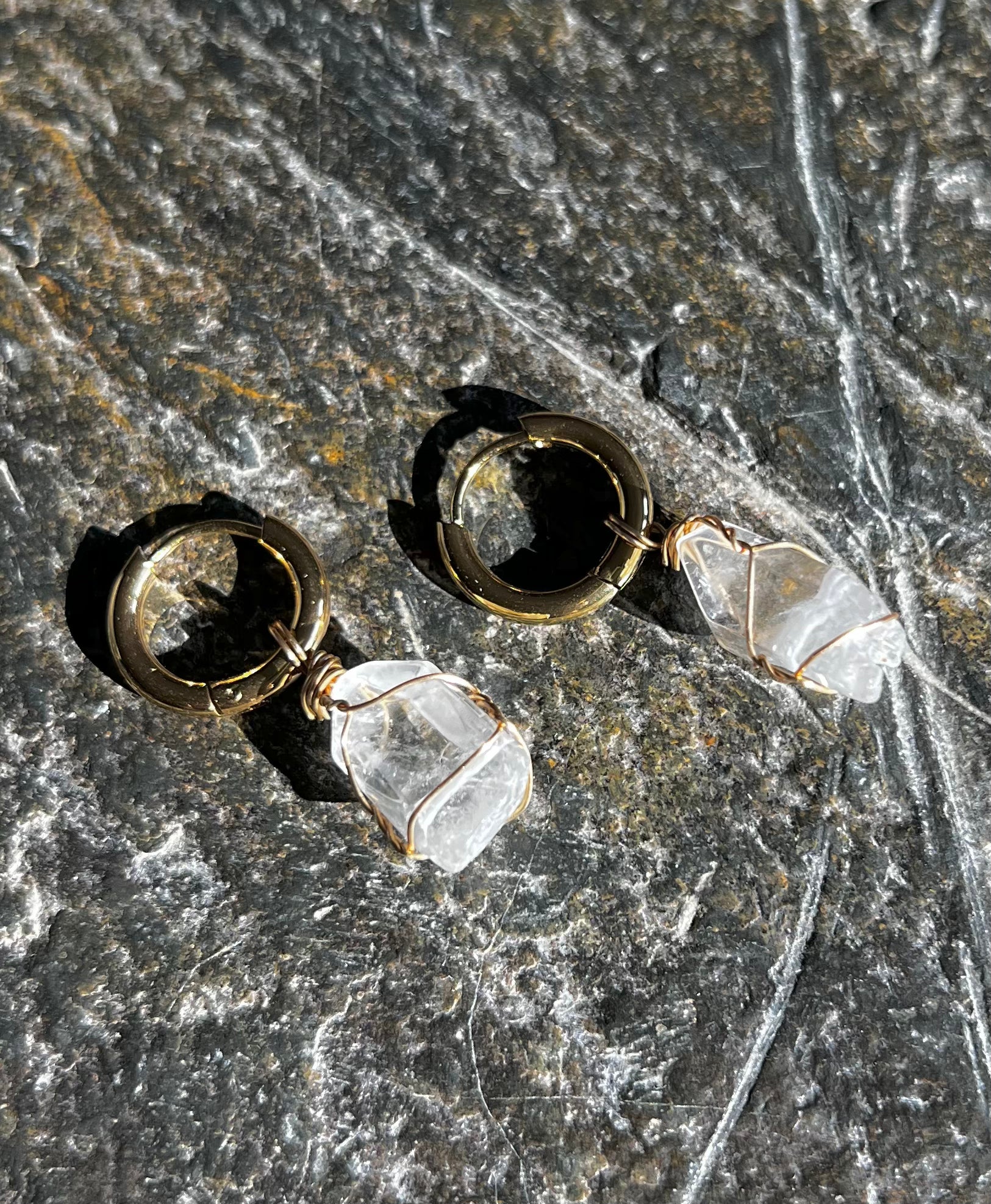 Indulge in the sophistication and elegance of our Crystal Drop Huggies. Adorned with sparkling quartz crystals, these earrings will add a touch of luxury to any outfit. With their unique huggie design, they provide a secure and comfortable fit, making them perfect for any occasion. Elevate your style with these exquisite earrings.