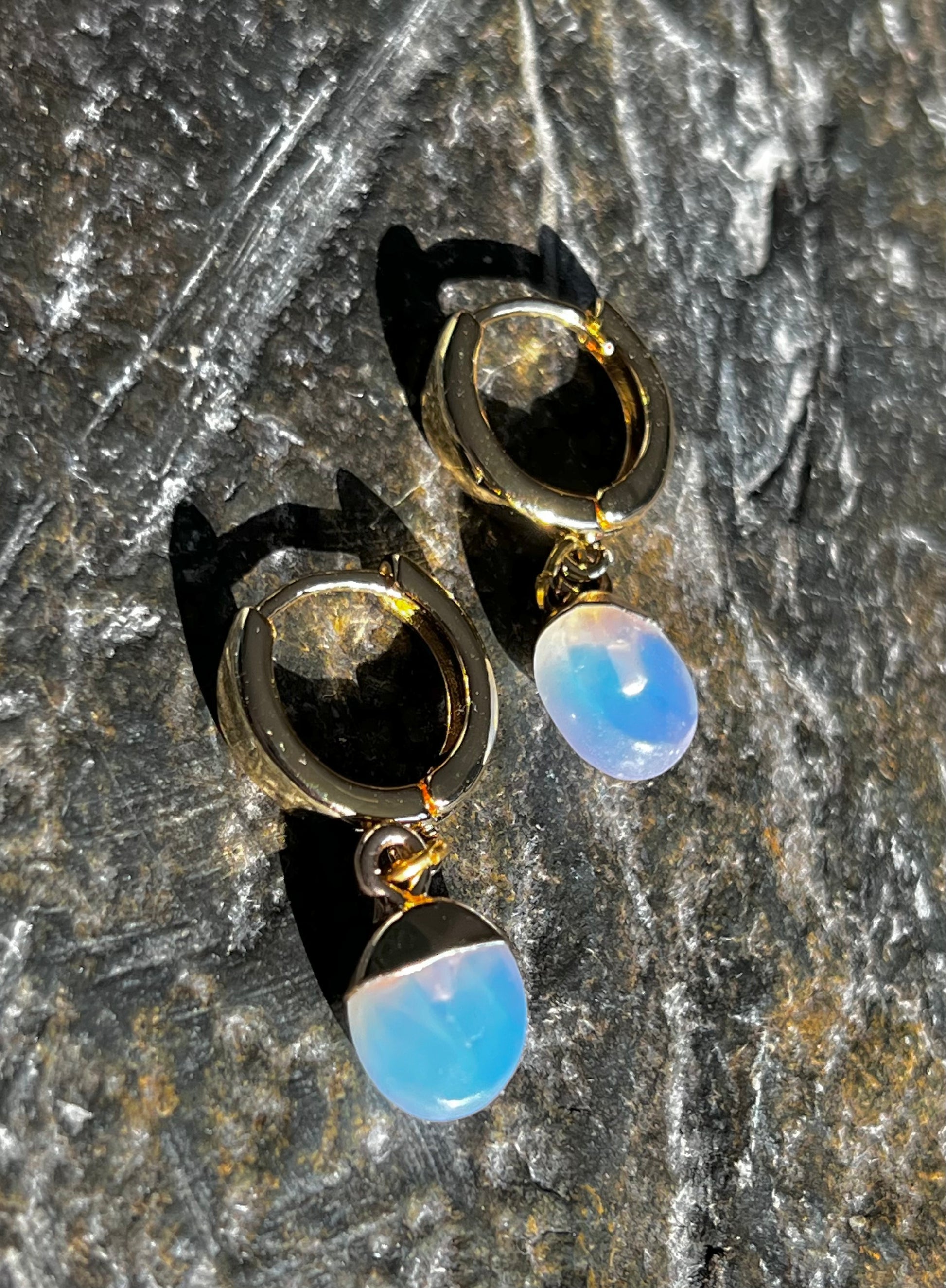 Indulge in the luxurious and exclusive beauty of our Opalite Huggies. These stunning earrings feature opalite stones that radiate elegance and sophistication. Enhance any outfit with these huggies, adding a touch of art and literature to your look. Elevate your jewelry collection with these exquisite opalite huggies.